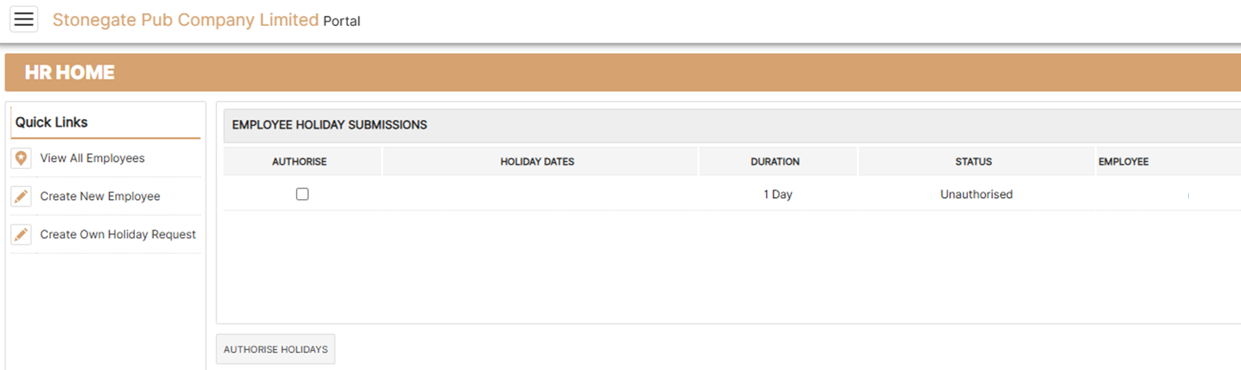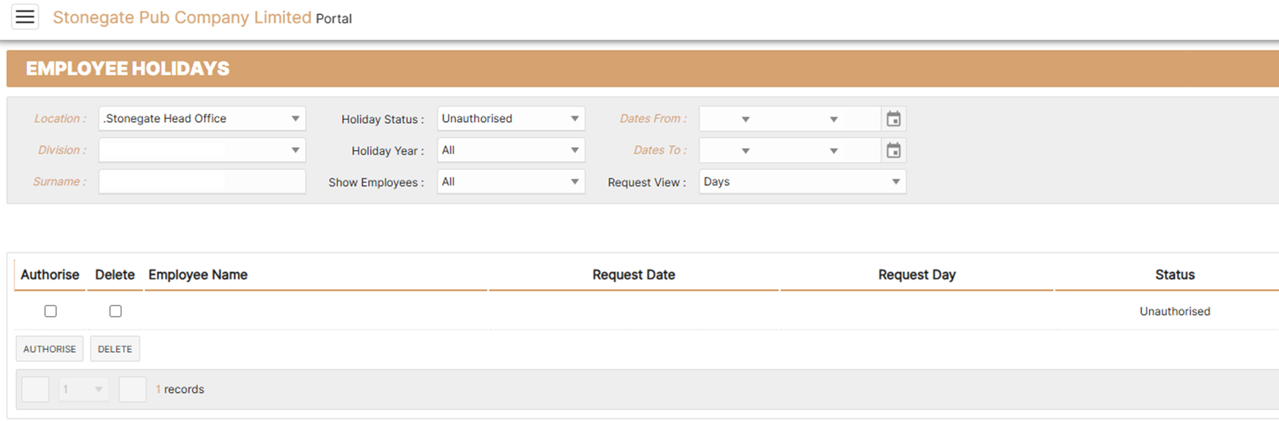 If the pending date/dates can be authorised, you can do that by ticking the dates that are to be authorised and then clicking Authorise Holidays.